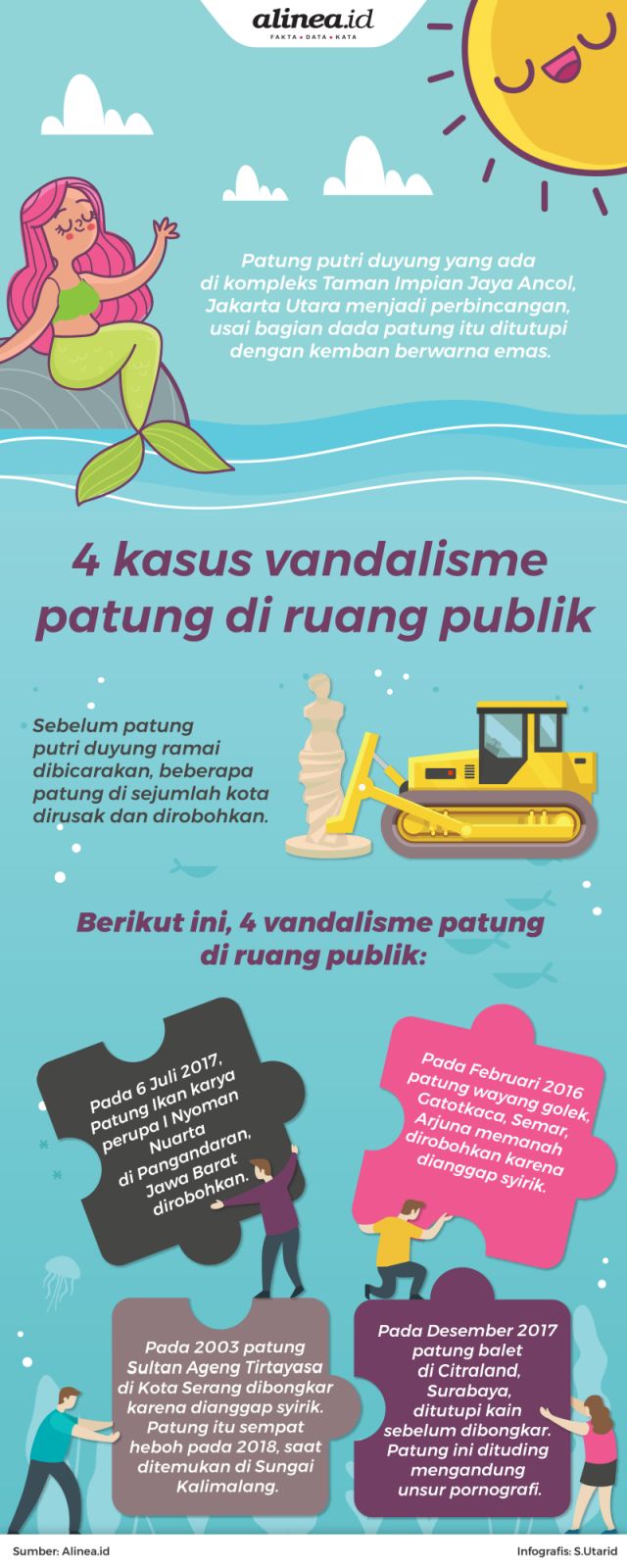 Vandalisme seni di balik kemban patung putri duyung Ancol